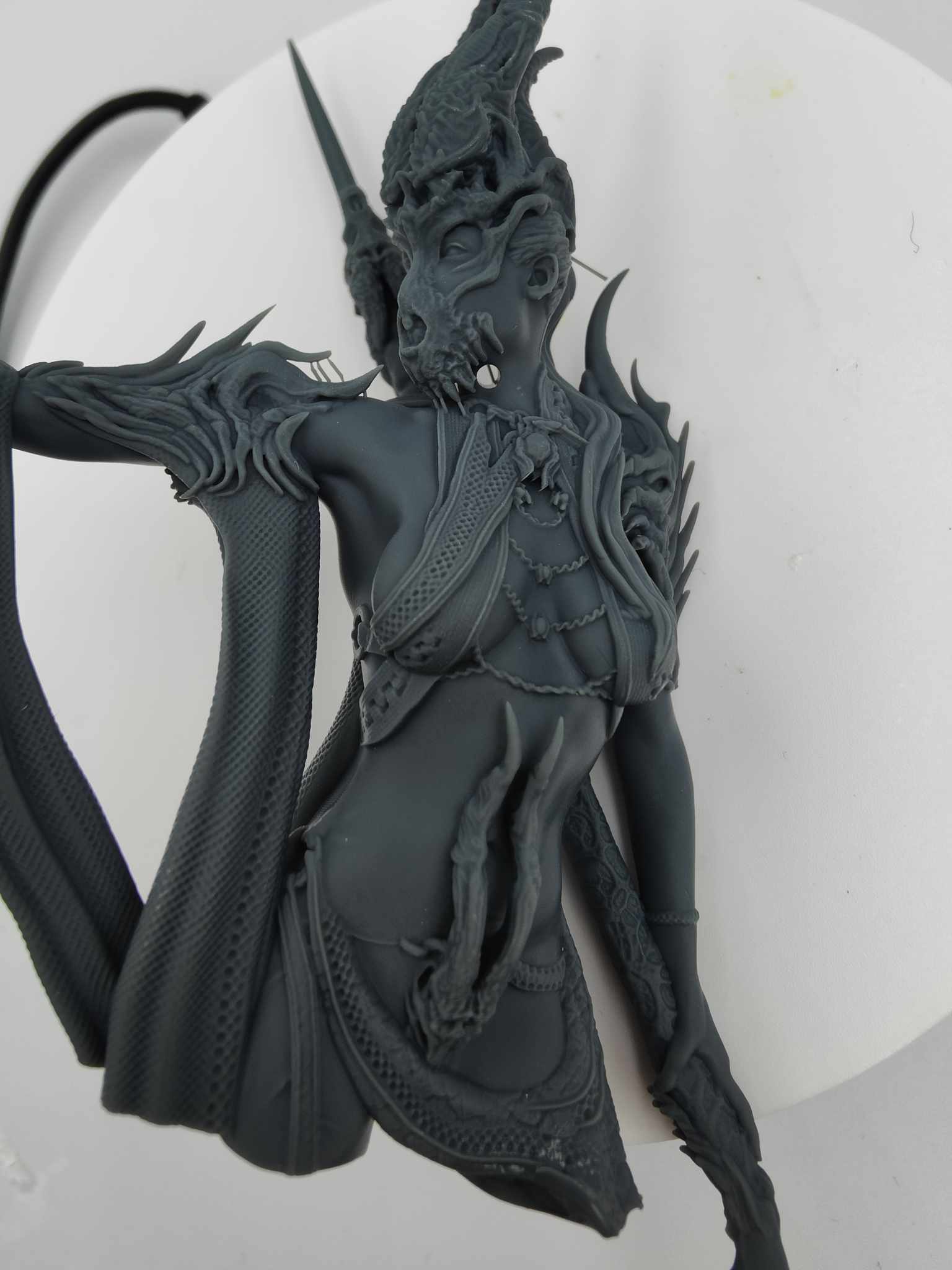 Dans ces conditions, la pièce est sortie en 8h12. C’est malheureusement l’une des machines les plus lentes actuellement, bien plus que la Creality Halot Mage Pro, de la catégorie “haut de gamme grand public”. Par contre, la Elegoo Saturn 4 reste quant à elle moins rapide.