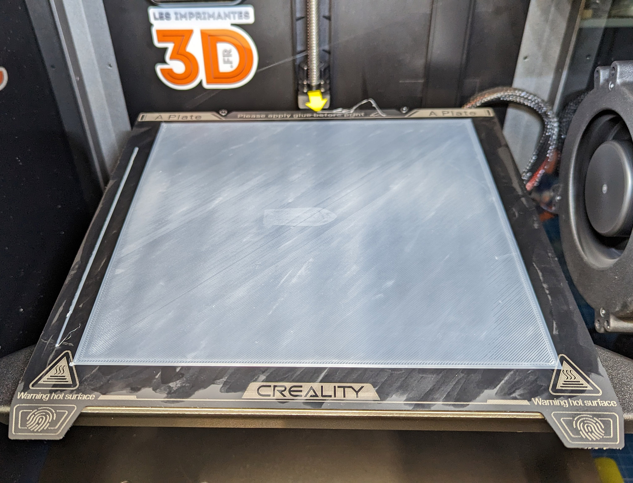 En l’absence de profil ABS dans Creality Print, j’en ai conçu un en me basant sur le profil générique de Bambu Lab. Malheureusement, mon premier essai s’est soldé par un échec, l’objet c’est décroché du plateau :