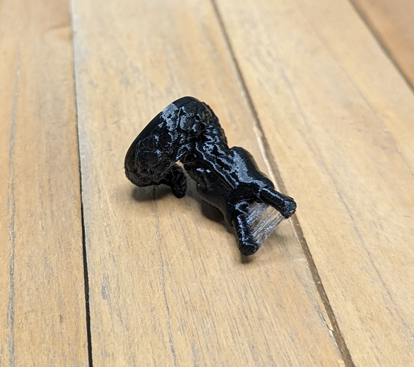 Et j’ai fini avec la mascotte MatterHackers qui est sortie en 1h40 avec des beaux surplombs, sans défaut malgré l’absence de support :