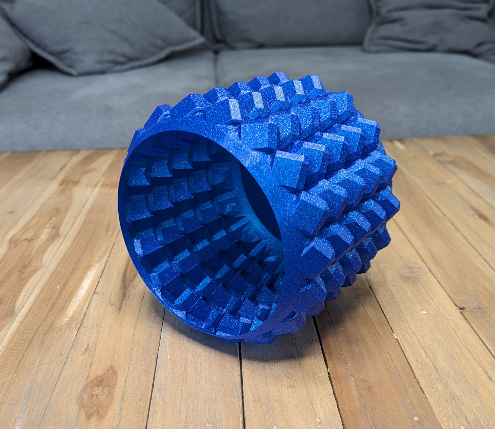 Toujours en PLA, j’ai réalisé quelques prints avec du filament premium Forshape de chez Polyfab3D. Il y a du PLA Glitter (pailleté) bleu océan (fiche) et du PLA Silk (satiné) gold (fiche) dont le rendu est magnifique, avec une fusion parfaite des couches, laissant une surface complètement lisse à l’œil et au toucher, même avec une épaisseur de couche à 200 microns.