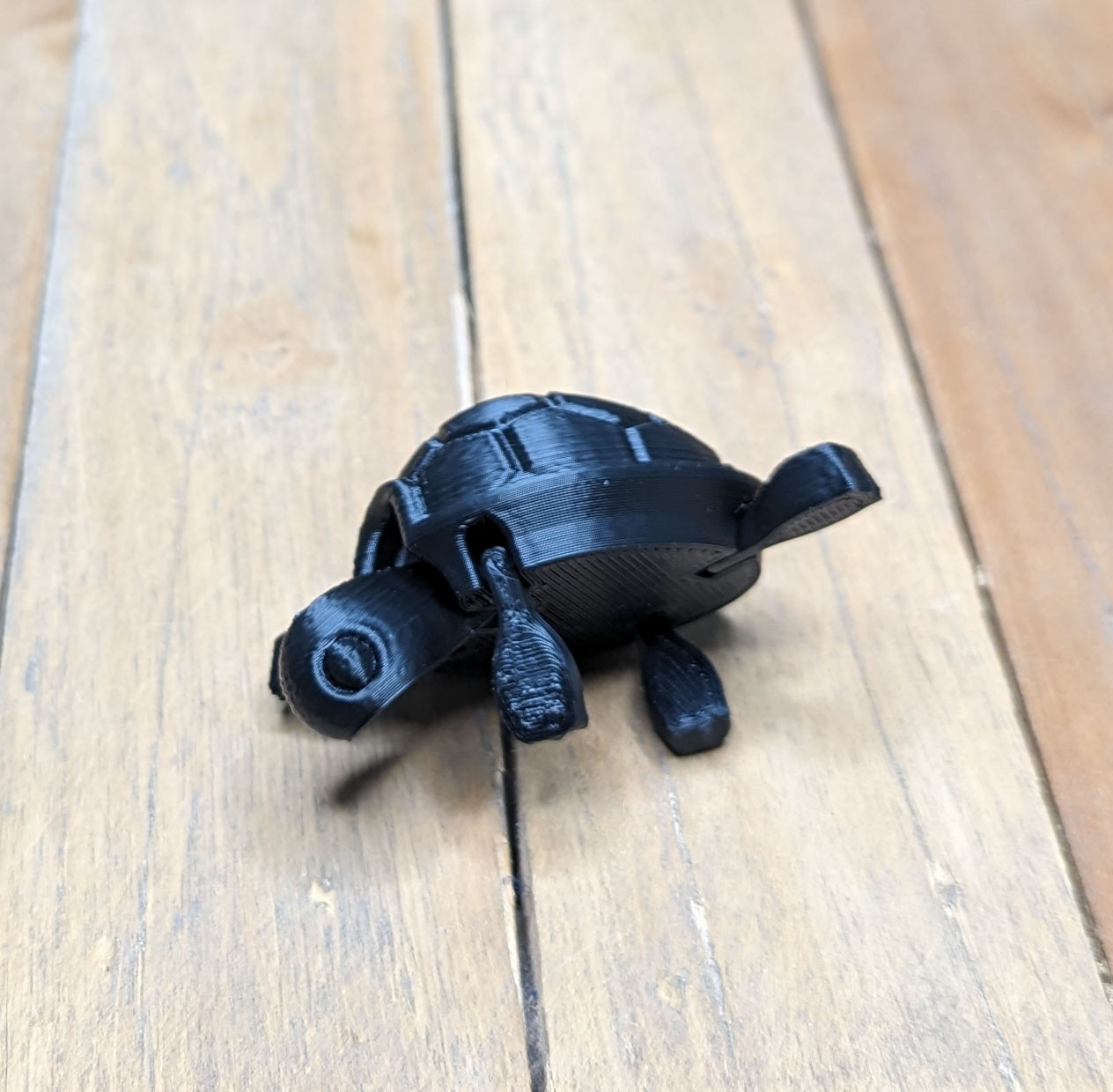 J’ai tout d’abord testé avec une petite tortue articulée sortie sans peine et fonctionnelle en 44 minutes :