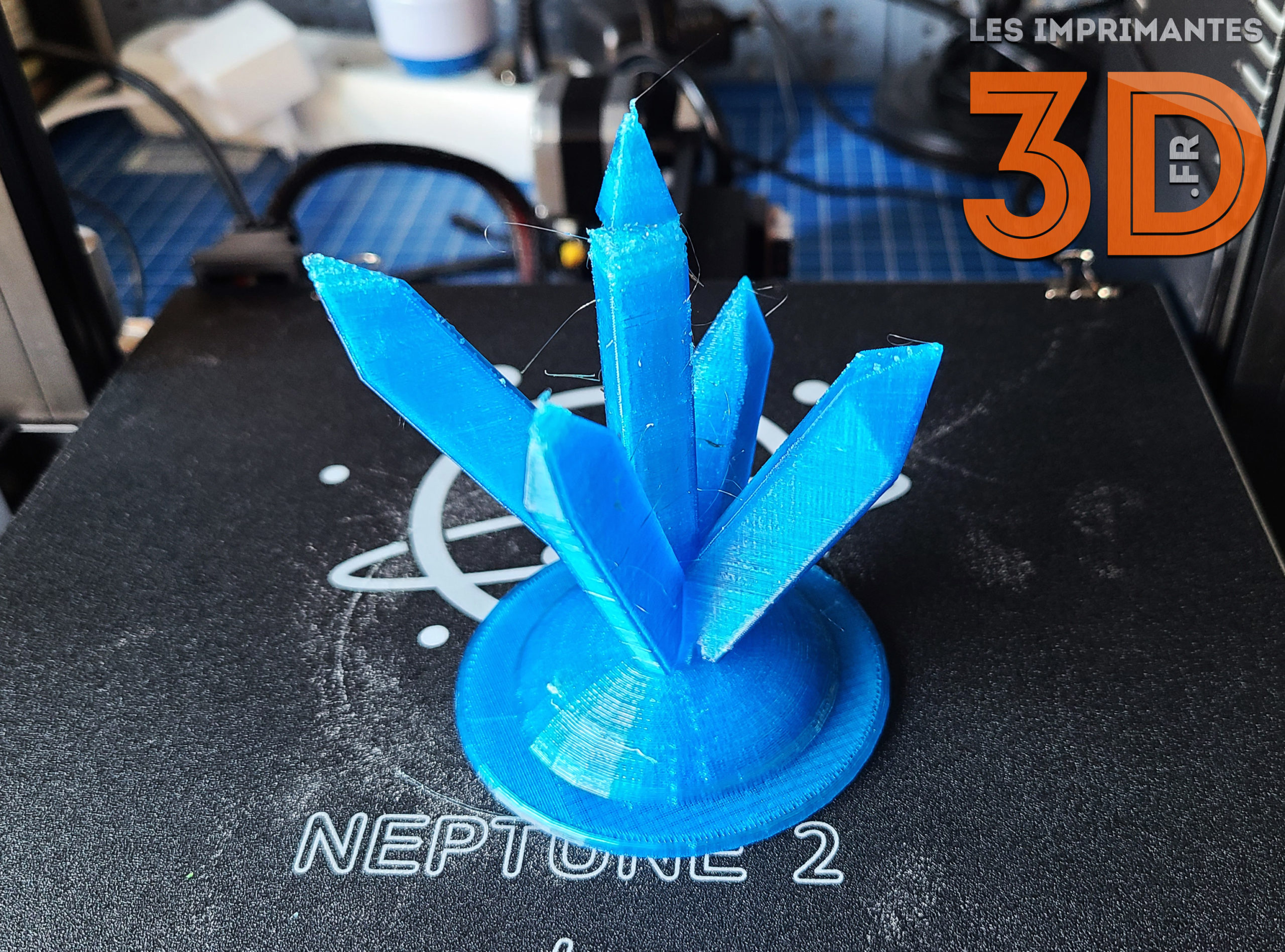 Généralement, le PETG n’apprécie pas la sur-ventilation (réglée à 100% dans le profil PLA) ni l’excès de rétractation. C’est sûrement pour cela qu’un bouchage partiel semble avoir eu lieu sur la pointe du milieu. A côté de ça, le reste du porte bijoux est plutôt bien réussi. En peaufinant le profil, la Neptune 2 est tout à fait apte à extruder proprement ce filament.