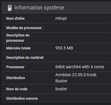 On distingue aussi le stockage eMMC de 8 Go où est installé l’OS Armbian, une distribution GNU/Linux basée sur Debian et Ubuntu.