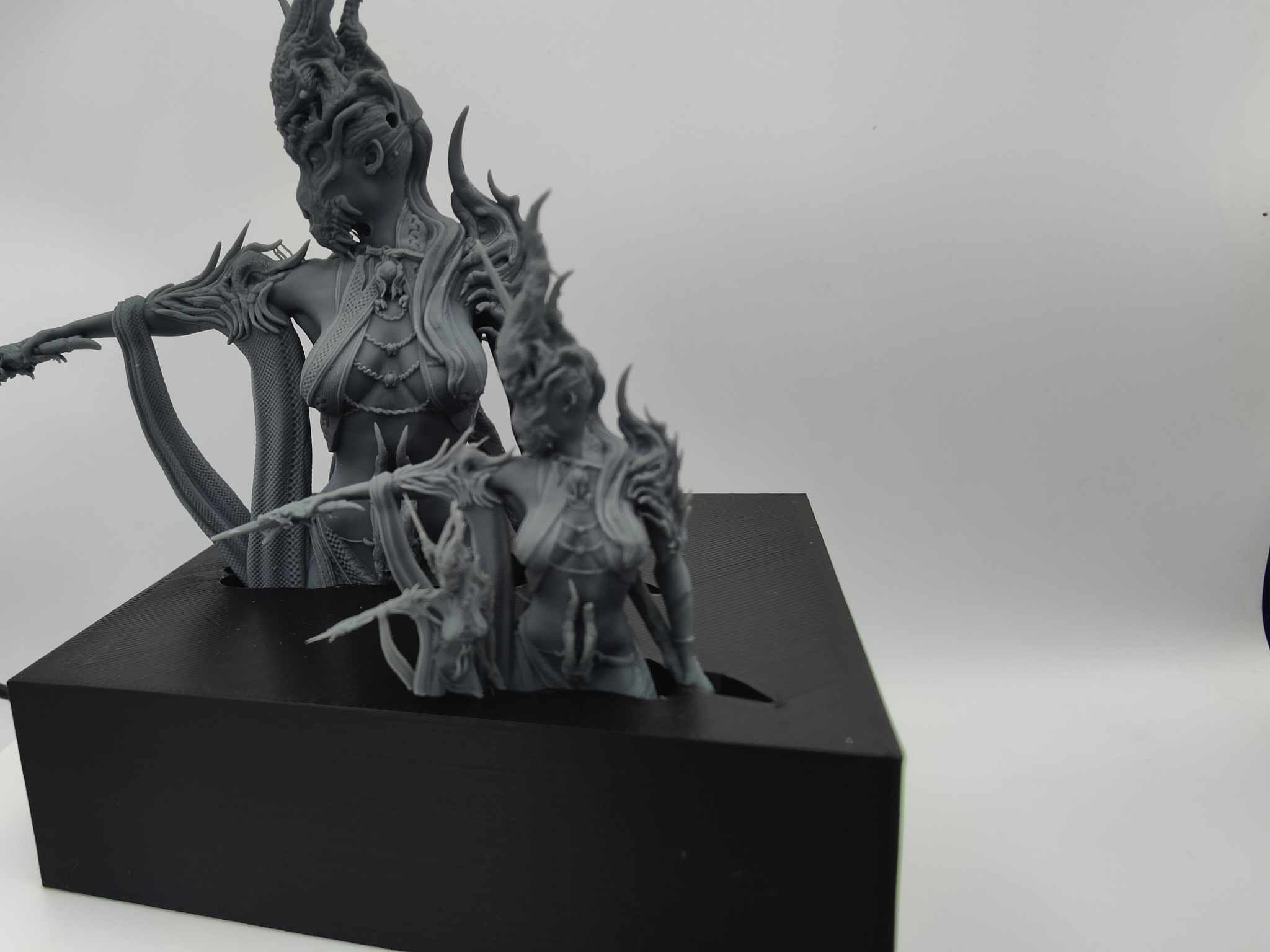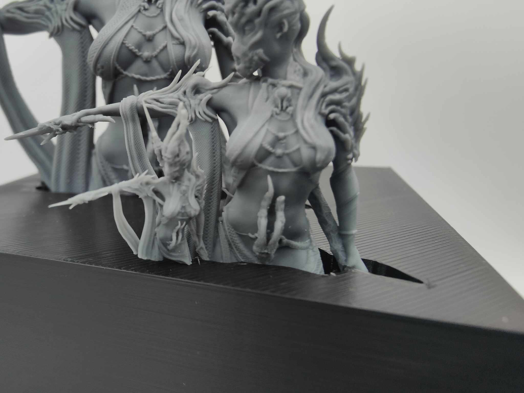 Nous avons les mêmes vitesses d’impression qu’avec l’ancienne Saturn 4 Ultra. En gardant mes protocoles de tests surexposés habituels (les 6 premières couches à 30 secondes, les autres couches à 2,5 secondes), avec le profil “Rapide”, nous sortons la pièce de test en 04h13. La différence de 3 minutes avec l’ancienne imprimante vient surement du fait qu’Elegoo recommande 1,2 seconde de temps de repos, contre 1 seconde pour les recommandations de l’ancienne version en 12K. Dans tous les cas, ces paramètres seront à adapter selon votre résine.