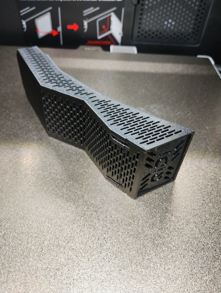 Ce nouveau modèle a été réimprimé en PETG… on verra bien s’il tiendra mieux les températures, sinon il faudra le réimprimer dans un autre matériau tolérant une température d’au moins 65 °C avant de se ramollir (température maximale du boitier Qidi).