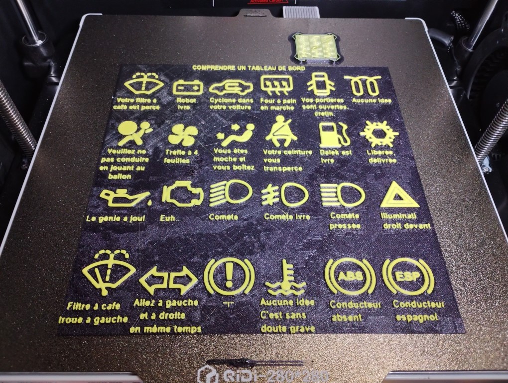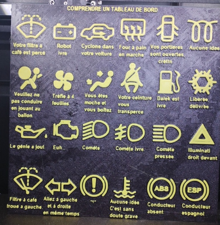 Panneau humoristique voyants tableau bord de véhicule