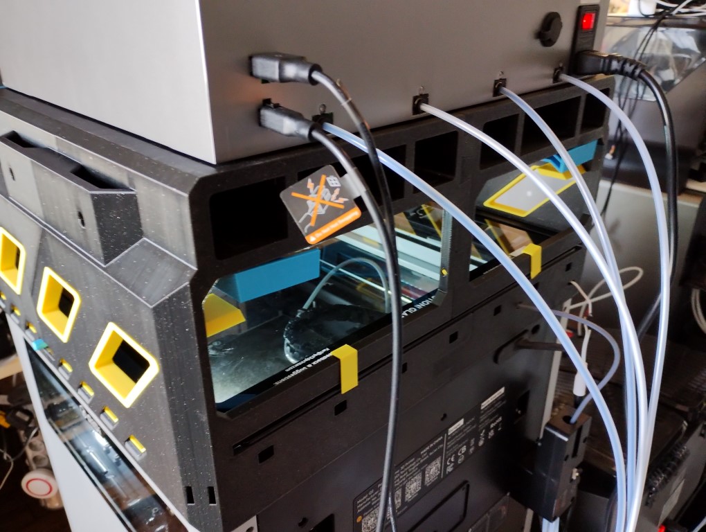 Encore heureux que parmi mes déboires je n’ai pas eu de casse de filament dans un des quatre extrudeurs de la box, car là, malgré l’ajout de la trappe d’accès dessous, il m’aurait fallu procéder à un démontage complet.