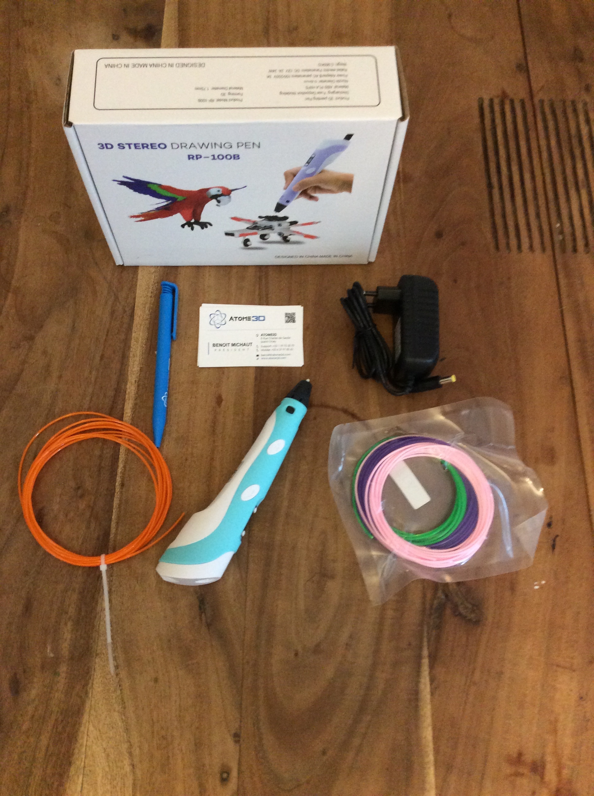 On ouvre la boîte qui est composée :Contenu de la boite du stylo 3D