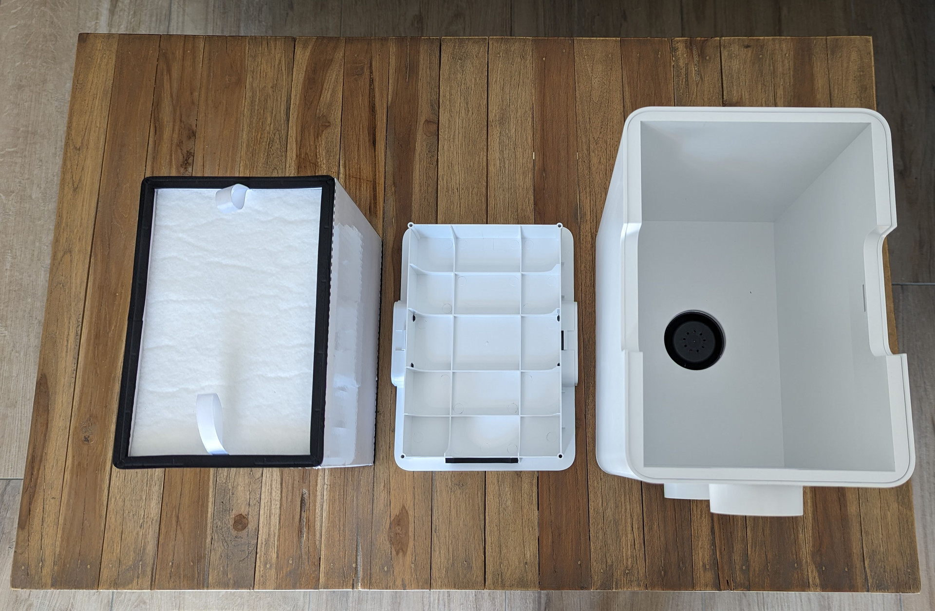 Le purificateur d’air xTool offre un triple filtrage avec un pré-filtre, un filtre HEPA H13 à structure en nid d’abeille qui, selon le constructeur, filtre 99,97% des particules jusqu’à 100,3μm et un filtre à charbon actif qui absorbe les gaz nocifs et mauvaises odeurs.